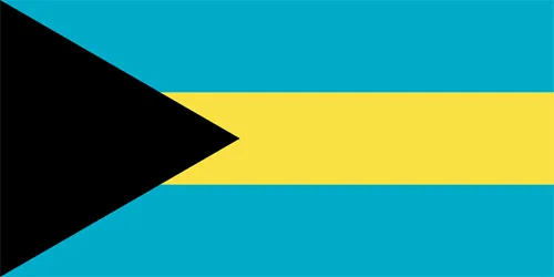 The colours embodied in the design of the Bahamian flag symbolise the image and aspirations of the people of The Bahamas; the design reflects aspects of the natural environment (sun, sand, and sea) and the economic and social development. The flag is a black equilateral triangle against the mast, superimposed on a horizontal background made up of two colours on three equal stripes of aquamarine, gold and aquamarine.