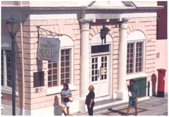 Sometime during the eighteenth century, a one-storey building, furnished only with a roof and rounded pillars was erected for the convenience of traders selling their goods at Public auctions. Situated on Bay Street, opposite George Street, Vendue House could have been erected before 1769 as a building on this site appears on a plan of Nassau for that date.