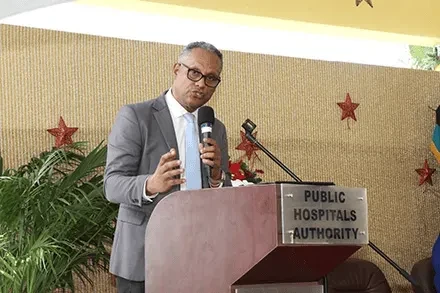 The Hon. Dr. Michael Darville, Minister of Health and Wellness, with Greetings during the Annual Governor General\'s Visit at Sandilands Rehabilitation Center