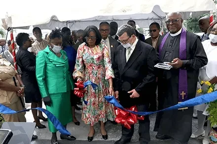 Her Excellency the Most Hon. Cynthia Pratt, Governor General, cuts the ribbon of the Newly Renovated Garden donated by Donald and Deborah Archer following the Annual Service at Sandilands Rehabilitation Centre