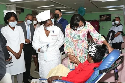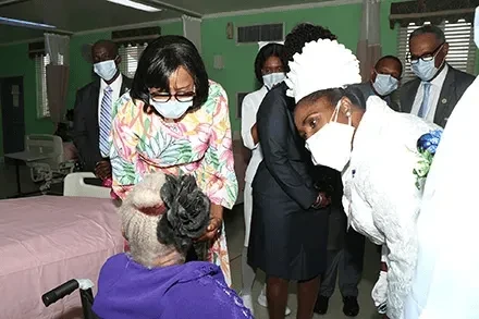 Her Excellency the Most Hon. Cynthia Pratt, Governor General, visited some of the patients on the Geriatrics Ward during the Annual Governor General\'s Visit at Sandilands Rehabilitation Center