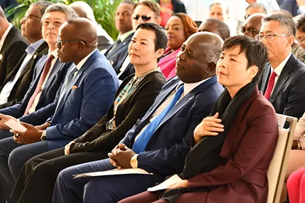 Prime Minister and Minister of Finance the Hon. Philip Davis speaks at the Official Ceremony for the Re-Opening the British Colonial Hotel, on December 18, 2023. Also conveying remarks were Deputy Prime Minister and Minister of Tourism, Invvestments and Aviation (MOTIA) the Hon. Chester Cooper; Chinese Ambassador to The Bahamas H.E. Dai Qingli; President of the Bahamas Hotel & Tourism Association Robert Sands; Vice-President of China State Construction Engineering Corporation Xingdi Peng; and General Manager of the British Colonial Dan McDermott. The Very Reverend Harry Bain, Dean and Rector of Christ Church Cathedral, gave the invocation. (BIS Photos/Kemuel Stubbs)