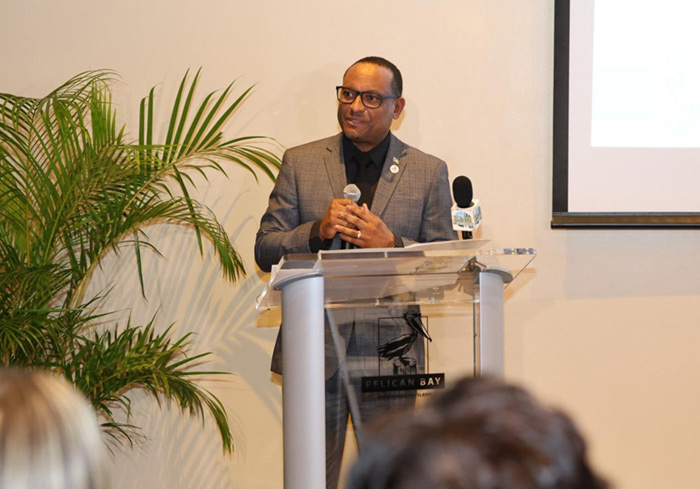 Kingsley Smith, Jr., Parliamentary Secretary in the Ministry for Grand Bahama delivered remarks during the Insurance Commission of The Bahamas Stakeholders Reception on Monday, January 21, 2025 at Canal House, Pelican Bay.