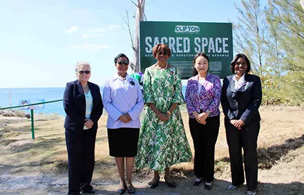 International Women's Day was celebrated at Clifton Heritage National Park on Wednesday, 12th March 2025. Pictured in front of the newly unveiled 'Sacred Space' were: Minister of Education and Technical and Vocational Training, Hon. Glenys Hanna-Martin; Spouse of the Prime Minister, Ann Marie Davis; Governor General, Her Excellency Dame Cynthia Pratt; Chinese Ambassador, Her Excellency Yan Jiarong; and Managing Director of Clifton Heritage National Park Authority, Glennette Reckley.