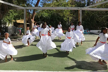 HARBOUR ISLAND, Eleuthera, The Bahamas -- Students at the Harbour Island Green School are cheered on by staff and wellwishers, at the E. Clement Bethel National Arts Festival Eleuthera Adjudications, on February 12, 2025.
