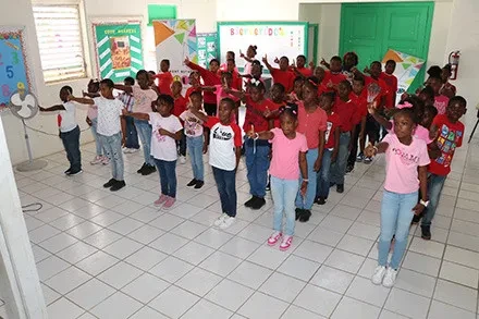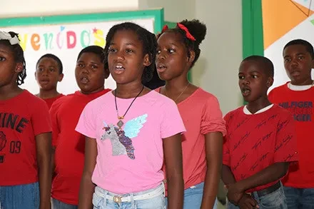 ROCK SOUND, Eleuthera, The Bahamas -- Rock Sound Primary School students sing, dance and perform recitations, as parents and well wishers cheer, during the E. Clement Bethel National Arts Festival Eleuthera Adjudications, on February 14, 2025. Among the highlights were rousing versions of pop songs by their choir and a Bahamian dance routine.