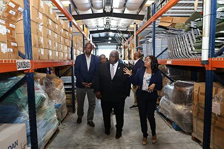 From there, the State Minister was given a tour of the NEMA Warehouse in Hawksbill, which played a major role following the passage of Hurricane Dorian. The warehouse became a major hub for the delivery of goods and vitally needed supplies from agencies throughout the United States and from around the globe for residents of Grand Bahama, once the recovery and rebuilding phase had begun.