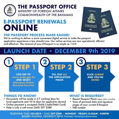 The wait is finally over- introducing E-Passport online renewals to the entire Bahamas. Here's how to get started: https://mofa.netcluesdemo.com/
